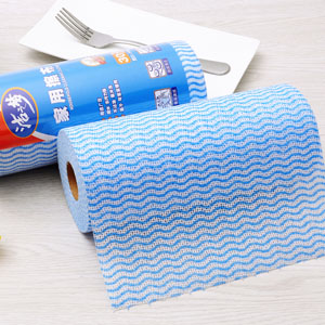 洗碗布材料采用进口的水刺设备和独特的水刺技术及印染工艺配套精制而成,产品拥有多项专利技术。该材料有不同网孔结构和各种印花颜色的搭配风格,适合厨房餐具、桌台等清洁使用。