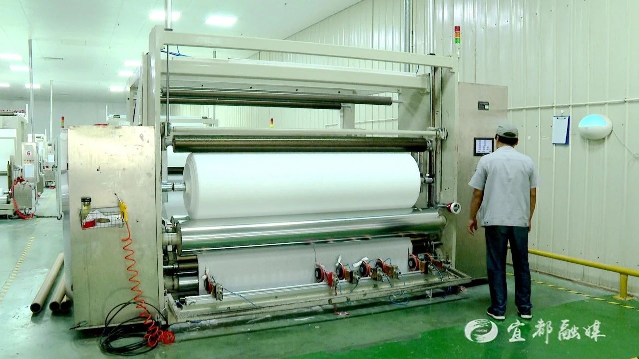 在宜昌市欣龙卫生材料有限公司厂房内,机器轰鸣,一片繁忙,生产研发部部长邓涛正在研究如何在提高无纺布生产效率的同时,还能降低生产成本。