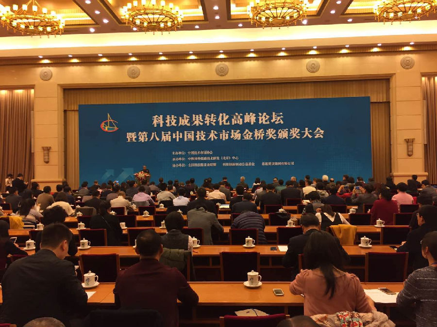 为了深入贯彻国务院办公厅关于《促进科技成果转移转化行动方案》的部署,加强科技与经济紧密结合,推动供给侧结构改革,支撑经济转型升级和产业结构调整,促进大众创业、万众创新,打造经济发展新引擎,“科技成果转化高峰论坛暨第八届中国技术市场金桥奖颁奖大会”于2016年11月16日—18日在北京京西宾馆和人民大会堂隆重举行。