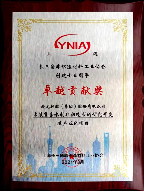 近日,上海长三角非织造材料工业协会创建十五周年庆祝活动在上海隆重举行。大会总结和表彰了在长三角非织造材料产业创新发展中作出突出贡献的项目、企业和个人,我司“木浆复合水刺非织造布的研究开发及产业化项目”荣获上海长三角非织造材料工业协会创建十五周年“卓越贡献奖”。