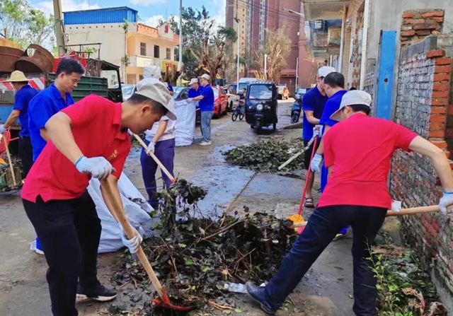 台风过境后的第一个早晨,由于信号中断,相互间都无法联系,然而在责任心的驱使下,大家都不约而同的赶到了厂区,并自发的投身到清障通路、除险排患、检测维修等各项灾后恢复重建工作之中。那一道道忙碌的身影,不仅是对极端自然灾害的无声宣战,更铸就起了欣龙人团结一心、众志成城的力量之墙,也为灾后恢复重建按下了“加速键”。在广大党员和骨干员工的日夜奋战下,水、电、气等保障设施快速恢复正常运行,经过紧急抢修维修,熔喷车间、水刺车间、制品车间产线陆续成功试车复产。公司在开展自救的同时,公司党委积极响应上级党组织的号召,迅速组建党员先锋突击队、志愿服务队深入澄迈县老城镇周边社区乡村,助力村民恢复生活秩序与灾后重建,以公益之心助力健康美好生活。