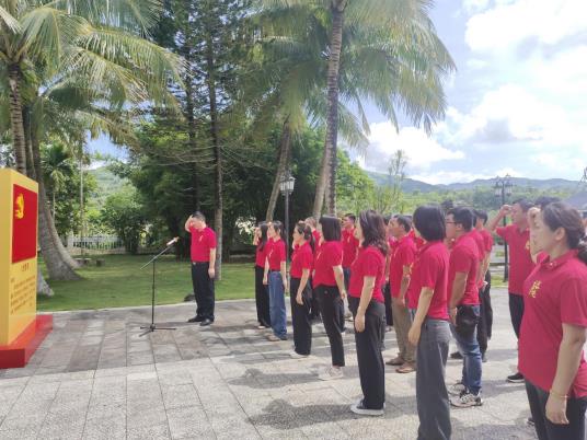 母瑞山是琼崖革命的摇篮,也是琼崖革命“二十三年红旗不倒”的见证地。在母瑞山革命根据地纪念园广场,党员们一起缅怀琼崖革命先驱冯白驹、王文明同志。大家面向鲜红的党旗,庄严肃立,重温入党誓词,表达对党的无限忠诚。