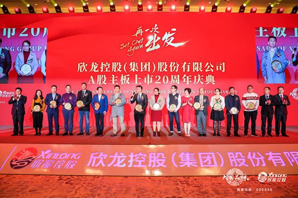 公司的快速发展,离不开欣龙的老一辈企业领导者,也离不开合作伙伴的大力支持。借此盛会,欣龙集团特向老一辈欣龙人颁发了“永远的欣龙人”纪念奖杯,向优秀合作伙伴颁发了荣誉奖盘。
