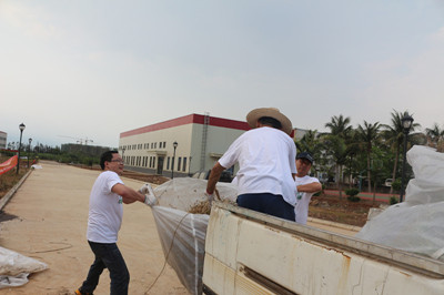在6号除草区,集团党委副书记赵祥、技术中心主任杨晓伟等正在一边擦着汗,一边忙个不停。赵书记说“你们别看我年纪比你们大,我的力气可不小,这周围的椰子树可是我20年前亲手种的”,他还说“这样的活动组织的非常好,我们欣龙人就因该这样,有担当、有个性、有创新,用自己的双手去创建美好的生活工作环境”。
