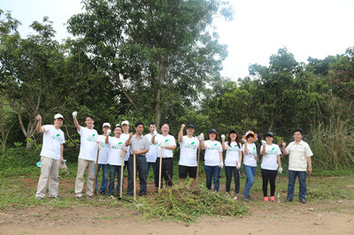 在总裁办公室、人力资源部和品牌文化部的精心策划组织下,活动启动后,仅在一天内,海南基地就有82名同事自愿报名参加,无纺股份公司自愿者队伍更是自发制作了队牌和团队口号。经过分组、推选队长、分发劳动工具等一系列准备工作之后,大家满怀热情,相继投入除草工作。
