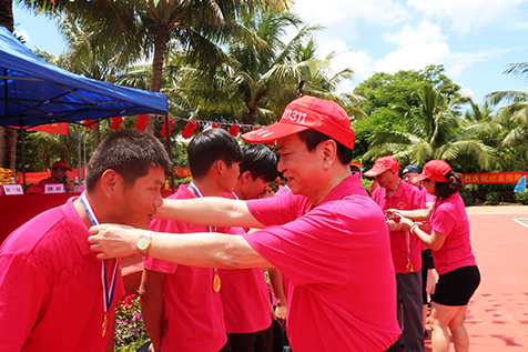 运动会高潮迭起,扣人心弦的拔河比赛一开始,就吸引了无数观众的目光,“加油,加油”——呐喊声一浪高过一浪,助威声此起彼伏,两旁的啦啦队都在卖力地为自己的队伍加油。8字跳绳比赛、套圈游戏更是参与度极高的项目,虽然烈日当头,但现场人头攒动,无论是运动员还是观众,都热情高涨。经过近3个小时的激烈角逐,当日上午进行的各项趣味运动会比赛项目圆满结束,11:30在篮球场举行了隆重的颁奖仪式及运动会闭幕式。此次运动会的举办,增进了集团公司员工之间的相互了解,丰富和活跃了职工业余文化生活,增强了企业凝聚力和职工向心力。