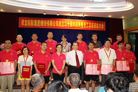 20年的厚积薄发,20年的筚路蓝缕,20年的坚持不懈,成就了欣龙集团今天灿烂的辉煌!为庆祝欣龙集团成立二十周年,自今年6月起,公司举办了一系列活动,包括厂庆征文、我为欣龙发展建言献策——“金点子”征集、乒乓球比赛、文明礼仪知识竞赛、寄语欣龙、老员工照片展等。7月16日,欣龙集团在海南老城经济开发区举行了盛大的二十周年庆典活动,欣龙集团创始人、董事长兼总裁郭开铸、创业元勋祝麟芳、对欣龙发展作出重要贡献的老领导、老前辈、优秀员工亲属代表以及欣龙全体干部员工齐聚一堂,隆重庆贺欣龙20岁生日。厂区内张灯结彩、花团锦簇、彩旗飘扬,处处洋溢着喜庆的氛围,当日,公司组织了异彩纷呈的节目:趣味运动会、总结表彰大会、“风雨二十载,同心创未来”文艺汇演及晚宴,喜迎这个隆重、特别的日子。现场约有450名欣龙人一同见证了这一历史时刻。