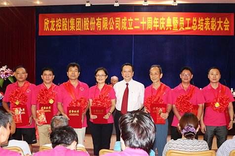 2013年7月16日下午15:00,欣龙集团成立二十周年总结表彰大会在企业技术中心多功能厅隆重召开,行政总裁魏毅主持会议,集团公司董事长兼总裁郭开铸、前任总经理祝麟芳、功勋员工、老员工家属代表及全体员工参加了此次表彰总结大会。会上,公司对评选出的1名企业创业元勋、7名功勋员工、16名优秀管理干部、23名优秀员工进行了表彰奖励,随后,获奖代表们从各自岗位出发发表了获奖感言,表达了他们对工作满怀的激情及对企业的美好祝愿。值得一提的是,为亲临欣龙集团20周年庆典,欣龙集团前任总经理、84岁高龄的企业创业元勋祝麟芳不远千里赶来,并对欣龙的明天寄予厚望:“欣龙不是从天上,也不是从地里冒出来的,是大家共同奋斗取得的好成绩、好的经验,欣龙为我们国家无纺事业做出了重要的贡献,今天看到欣龙人兴致勃发,看到欣龙人的精神风貌令人振奋,希望全体欣龙人共同努力,把欣龙公司做得更好,更好地推动我国无纺事业的发展”。随后,董事长兼总裁郭开铸就厂庆二十周年发表重要讲话:“二十年风雨同舟,二十年艰辛坎坷,二十年不离不弃,二十年不折不挠,欣龙不懈努力发展到今天,成为国内非织造行业内的科技龙头企业,这是全体欣龙人用“高起点、高科技、大规模、国际化”的经营理念,用立志发展中国无纺工业的信念和目标,艰苦付出取得的伟大成就。阳光总在风雨后,我们已经共同走过风雨二十年征程,从今天开始欣龙已经踏上了新的征程,展望新的理想,欣龙集团的明天充满希望”。